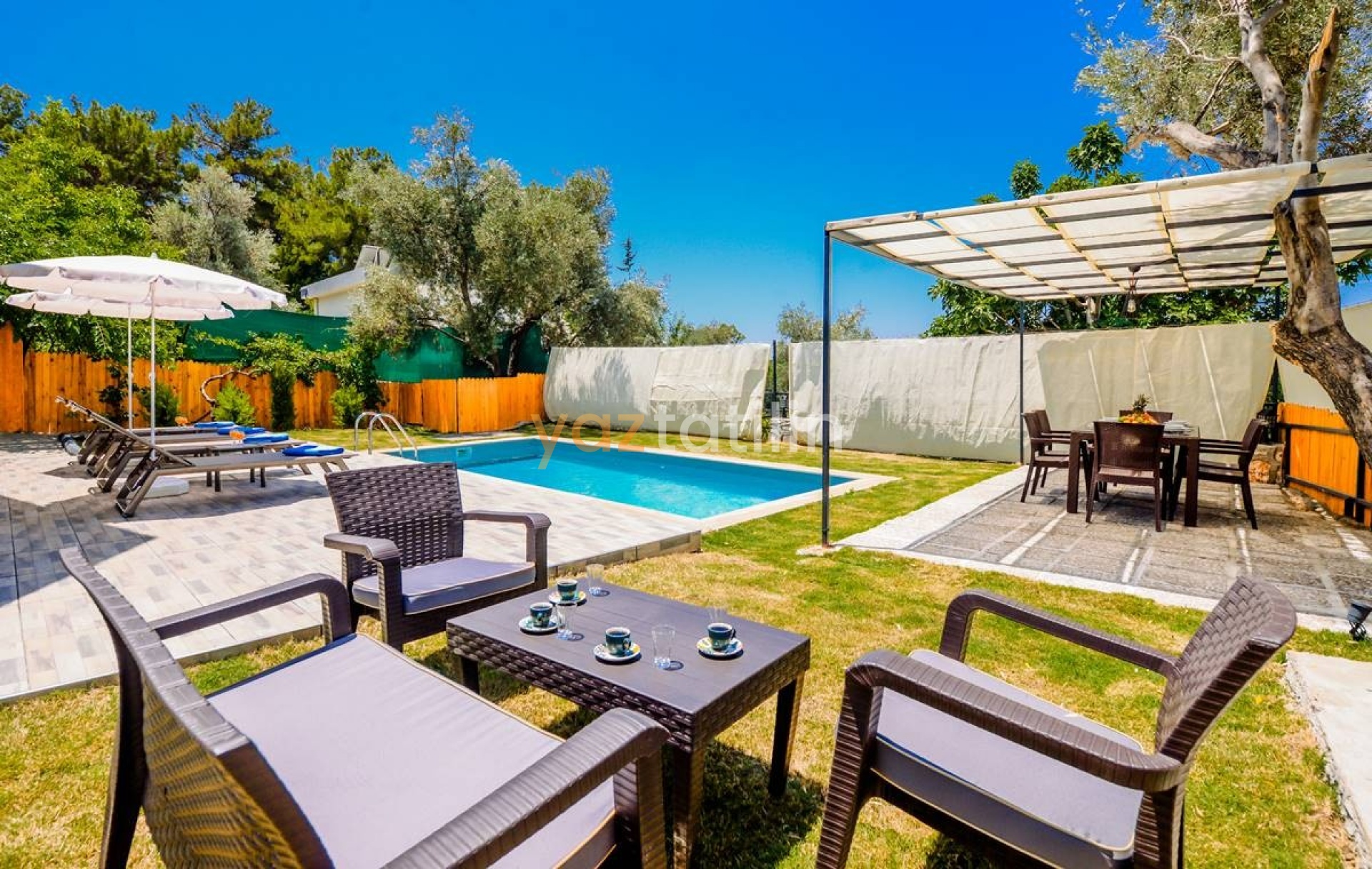 - Havuz ve bahçe bakımları her gün erken saatte görevli tarafından yapılır